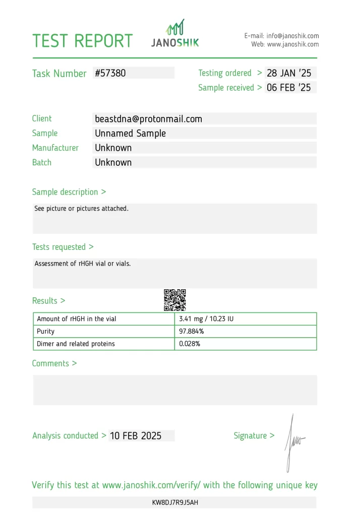 - Verification URL: https://janoshik.com/tests/57380_KW8DJ7R9J5AH